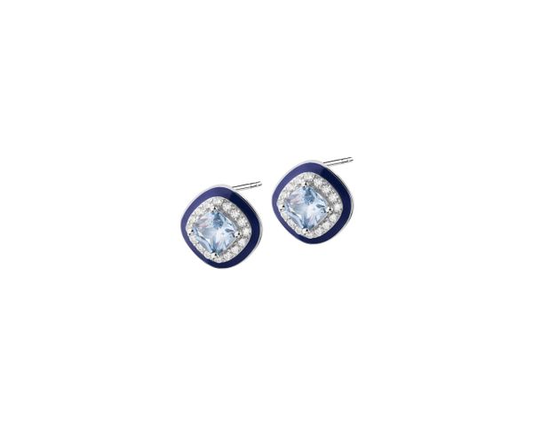 Kolczyki srebrne z cyrkoniami i emalią – kwadraty