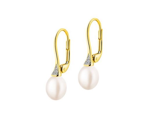 Kolczyki z żółtego złota z diamentami i perłami – próba 375