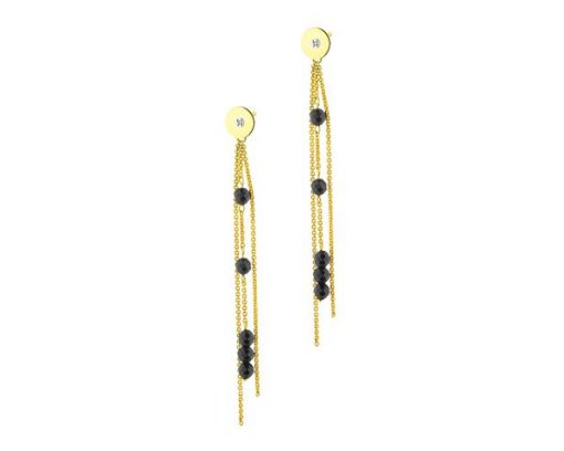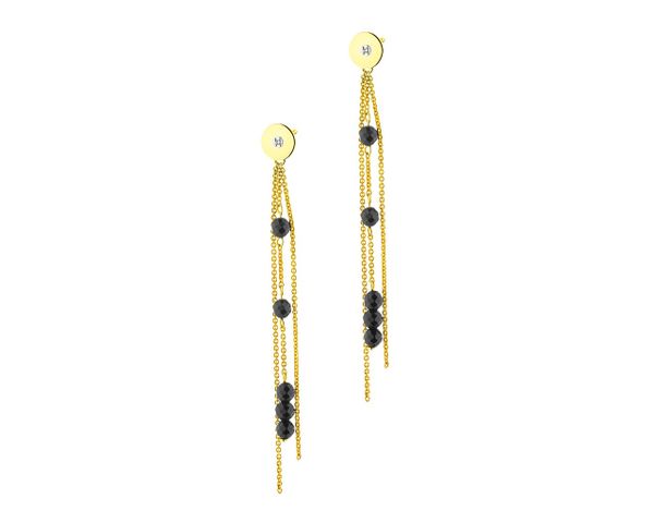 Kolczyki z żółtego złota z diamentami i agatami – kulki – próba 375 – 110.615. Żółte złoto rodowane