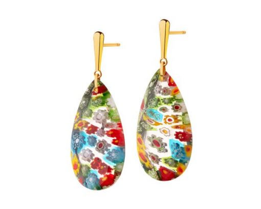 Złote kolczyki, szkło szlifowane – kwiaty – AP536-7477. Żółte złoto