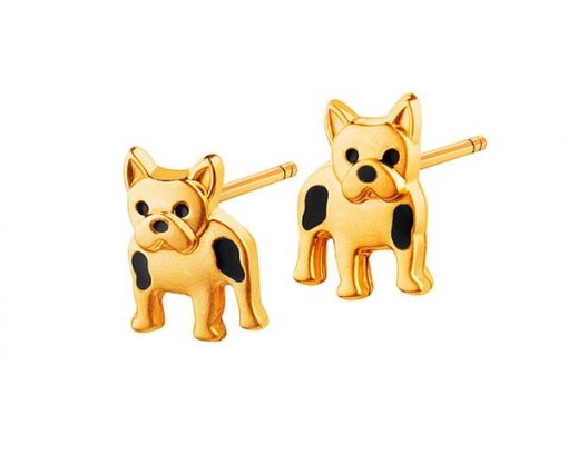 Złote kolczyki z emalią – pieski – AP536-4528. Żółte złoto