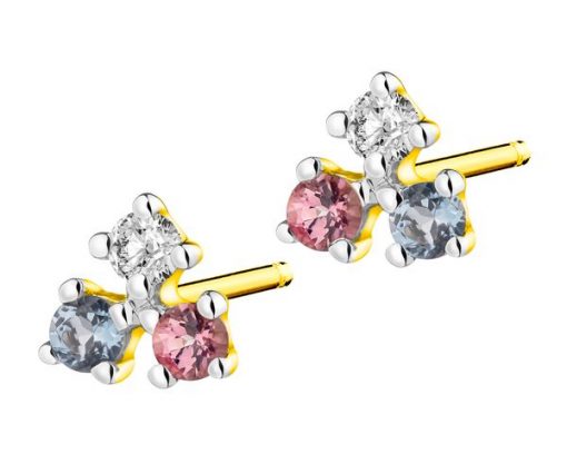 Kolczyki z żółtego złota z brylantami, topazami London Blue i turmalinami – próba 375