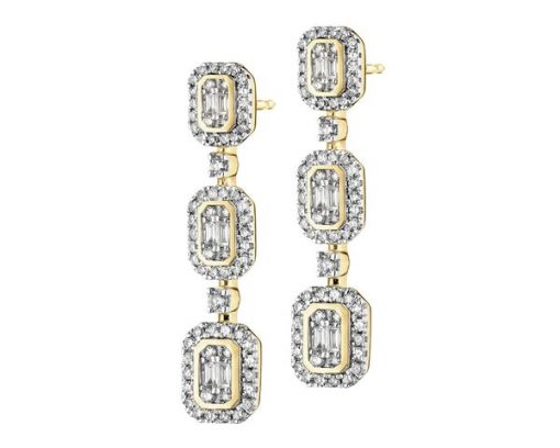 Kolczyki z żółtego złota z diamentami – 0,93 ct – próba 585 – 181.324. Żółte złoto rodowane