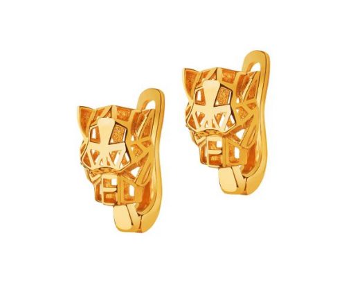 Złote kolczyki z cyrkoniami – pumy – AP536-3607. Żółte złoto