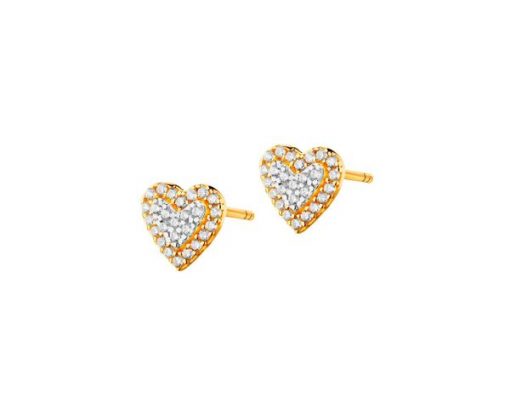 Złote kolczyki z cyrkoniami – serca – K-712.01. Żółte złoto rodowane