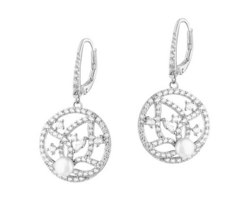 Kolczyki srebrne z perłami i cyrkoniami – koła, kwiat lotosu – AP534-7895. Srebro rodowane