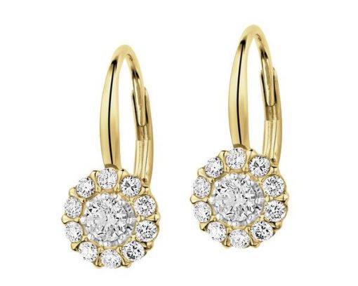 Kolczyki z żółtego złota z brylantami – 0,66 ct – próba 585 – 220.463. Żółte złoto rodowane