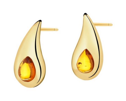 Kolczyki srebrne z bursztynem – łezki – AP539-9054. Srebro pozłacane