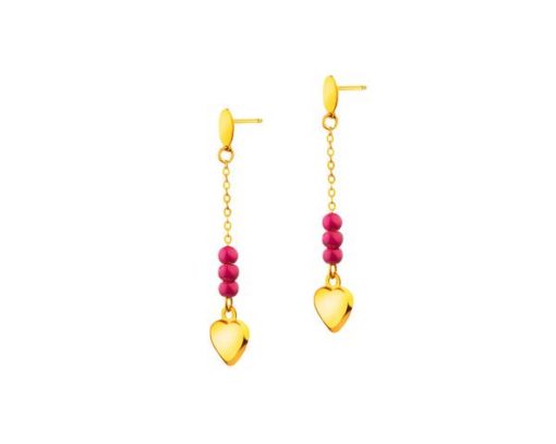 Złote kolczyki z emalią – serca – AP532-2613. Żółte złoto