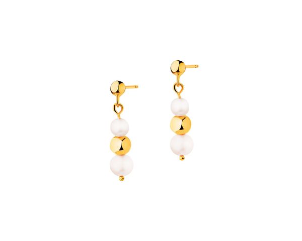 Złote kolczyki z perłami – kulki – AP532-6302. Żółte złoto