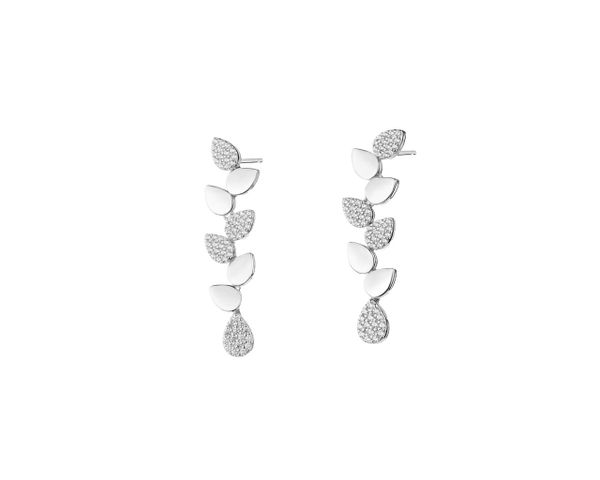 Kolczyki srebrne z cyrkoniami – liście – AP533-2953. Srebro rodowane