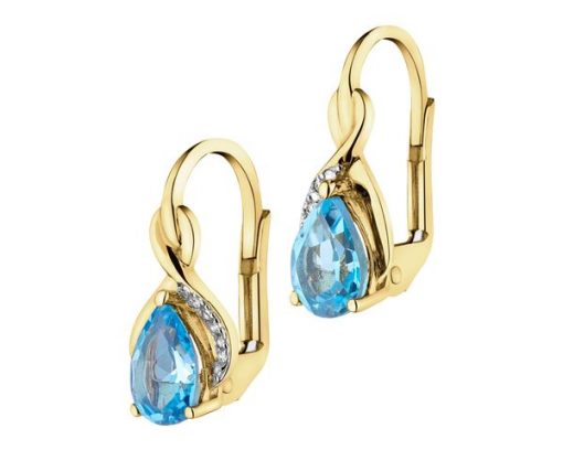 Kolczyki z żółtego złota z diamentami i topazami – próba 375 – 103.721. Żółte złoto rodowane