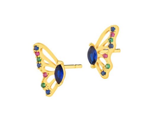 Kolczyki srebrne z cyrkoniami – motyle – AP534-1567. Srebro pozłacane