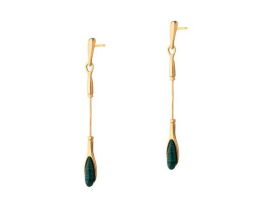 Kolczyki srebrne z malachitem – AP534-1731. Srebro pozłacane