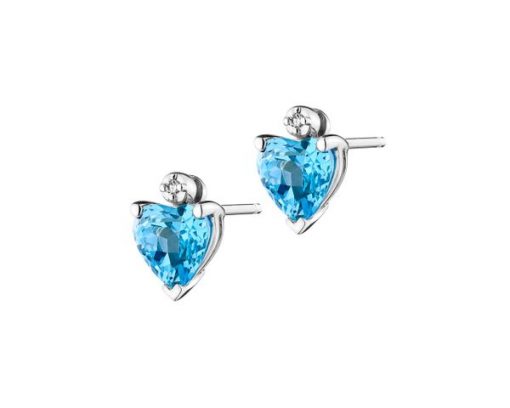 Kolczyki z białego złota z diamentami i topazami – serca – próba 375