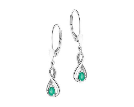 Kolczyki z białego złota z diamentami i szmaragdami – próba 585 – 110.215. Białe złoto rodowane