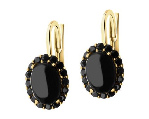 Złote kolczyki z onyksami syntetycznymi