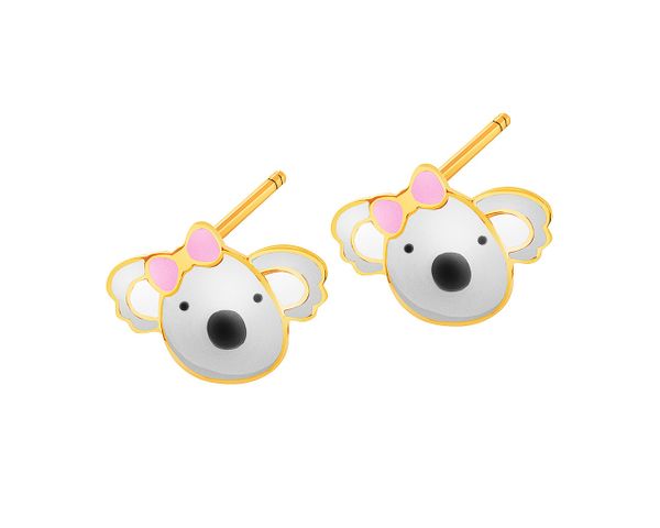 Złote kolczyki z emalią – misie koala – AP536-3604. Żółte złoto