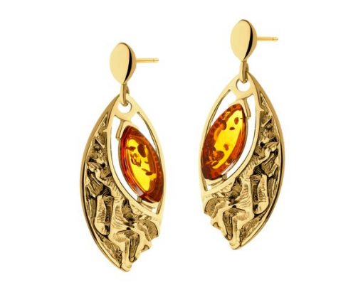Kolczyki srebrne z bursztynem – AP540-2504. Srebro pozłacane