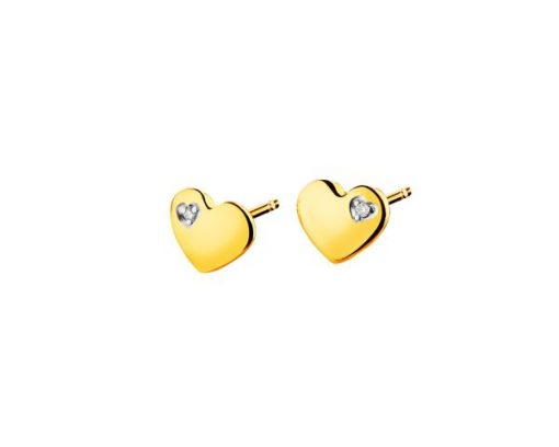 Kolczyki z żółtego złota z brylantami – serca – 0,006 ct – próba 375