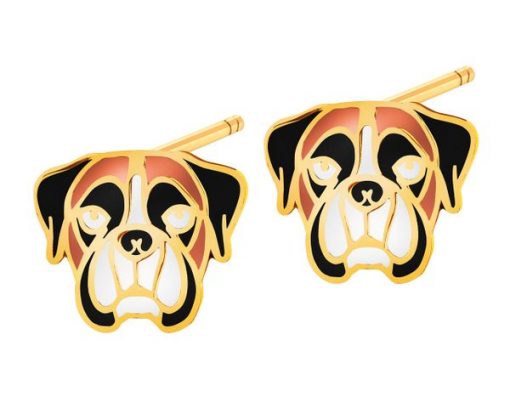 Złote kolczyki z emalią – pieski – AP537-4400. Żółte złoto
