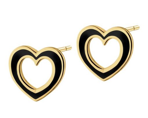 Złote kolczyki z emalią – serca – AP539-2658. Żółte złoto