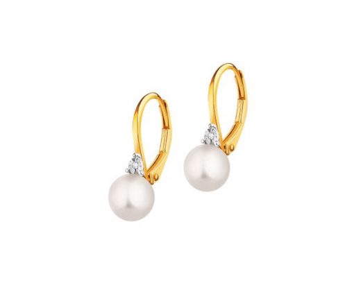 Kolczyki z żółtego i białego złota z diamentami i perłami – próba 585 – 110.284. Żółte i białe złoto rodowane