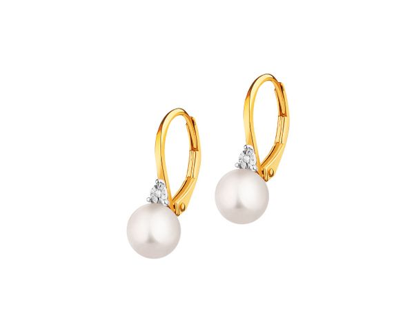 Kolczyki z żółtego i białego złota z diamentami i perłami – próba 585