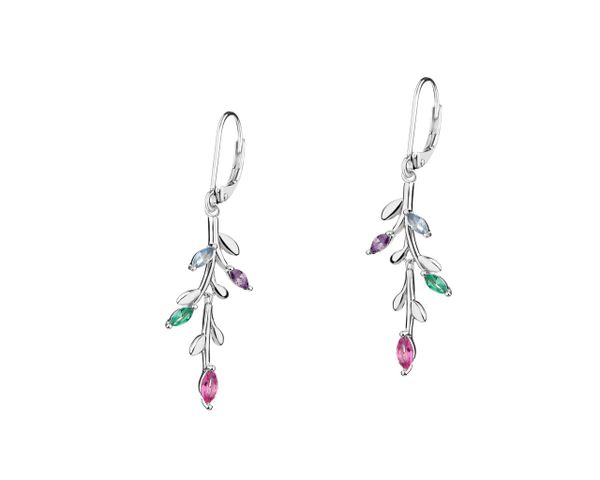 Kolczyki srebrne z cyrkoniami – liście – AP534-1596. Srebro rodowane