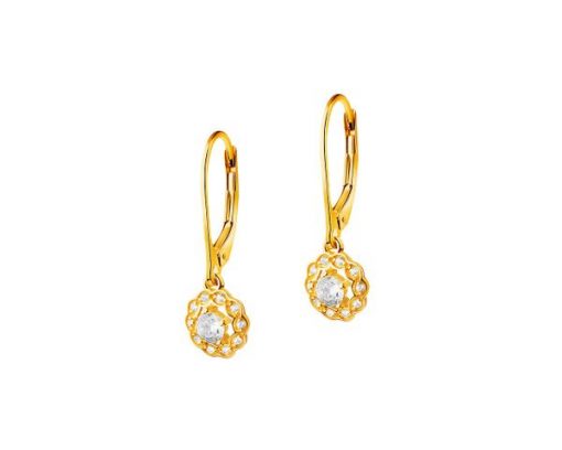 Złote kolczyki z cyrkoniami – kwiaty – K-845.01. Żółte złoto