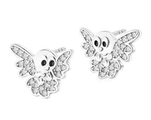 Kolczyki srebrne z cyrkoniami i emalią – Harry Potter, sowa Hedwiga, Warner Bros. Discovery – WB537-7770. Srebro rodowane