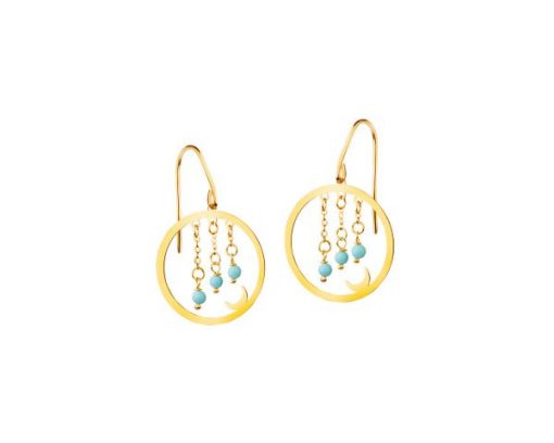 Złote kolczyki z koralami – koła, Księżyce – AP531-7086. Żółte złoto