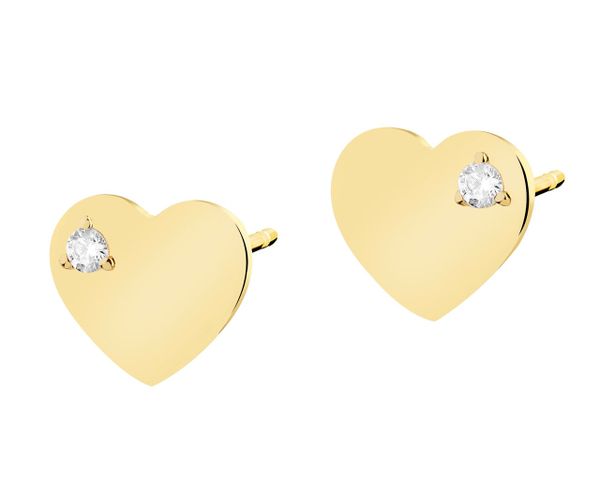 Złote kolczyki z cyrkoniami – serca – K-883.01. Żółte złoto