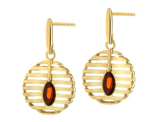 Kolczyki srebrne z bursztynem – koła – AP539-3888. Srebro pozłacane