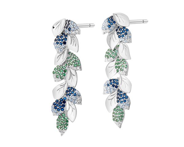 Kolczyki srebrne z cyrkoniami – liście – AP538-3255. Srebro rodowane