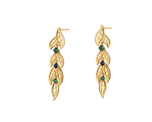 Kolczyki srebrne z cyrkoniami – liście – AP532-1820. Srebro pozłacane