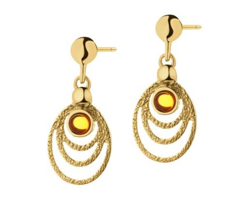 Kolczyki srebrne z bursztynem – AP538-4888. Srebro pozłacane