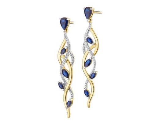 Kolczyki z żółtego złota z brylantami i szafirami – próba 585