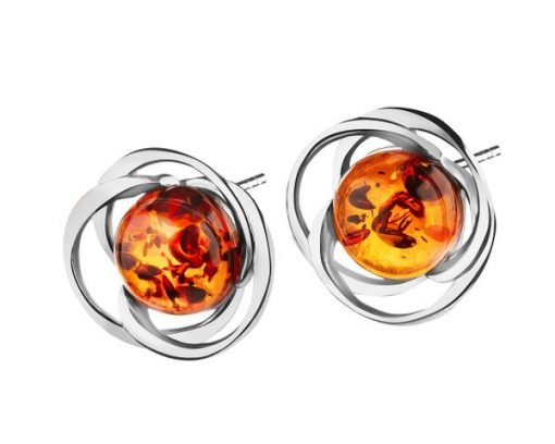 Kolczyki srebrne z bursztynem – AP537-5671. Srebro rodowane