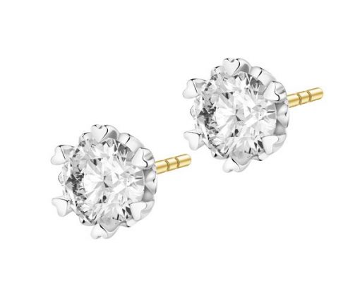 Kolczyki z żółtego złota z brylantami – serca – 0,85 ct – próba 585 – 110.522. Żółte złoto rodowane