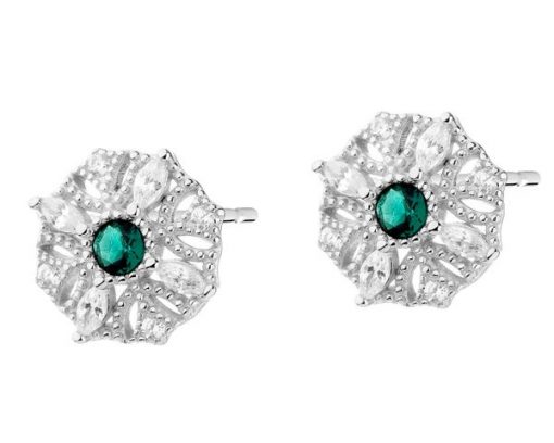 Kolczyki srebrne z cyrkoniami – rozeta – AP537-2057. Srebro rodowane