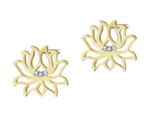 Kolczyki z żółtego złota z diamentami – kwiaty lotosu – 0,01 ct – próba 375 – 103.770. Żółte złoto rodowane