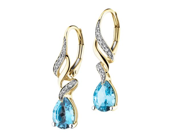Kolczyki z żółtego złota z diamentami i topazami – próba 585 – 220.582. Żółte złoto rodowane