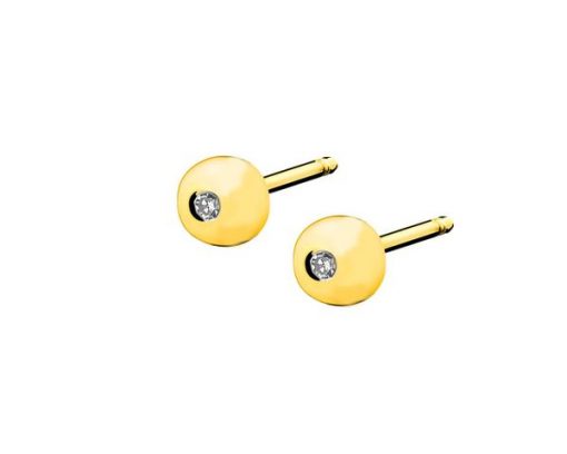 Kolczyki z żółtego złota z diamentami – kulki – 0,01 ct – próba 375