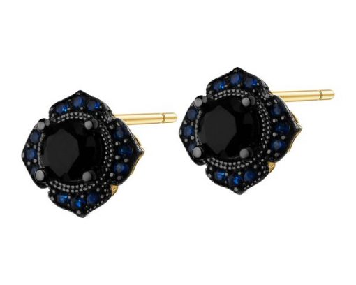 Złote kolczyki z cyrkoniami – AP539-4186. Żółte złoto, czarny rod