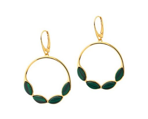 Kolczyki srebrne z malachitem – koła – AP532-5255. Srebro pozłacane