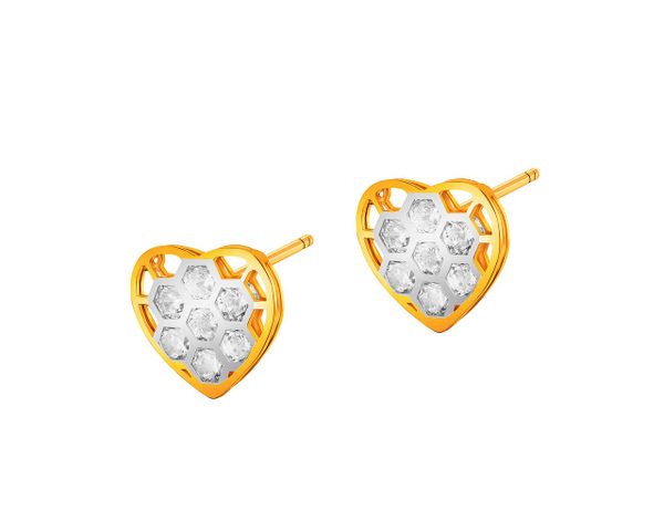 Złote kolczyki z cyrkoniami – serca – AP534-7763. Żółte złoto rodowane