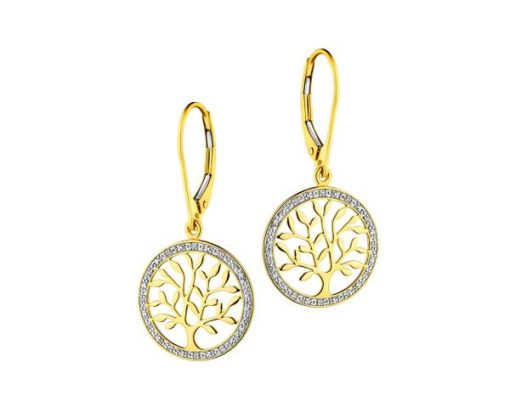 Kolczyki z żółtego złota z diamentami – drzewka – 0,07 ct – próba 585