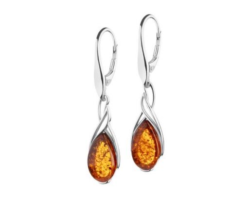 Kolczyki srebrne z bursztynem – AP537-5663. Srebro rodowane