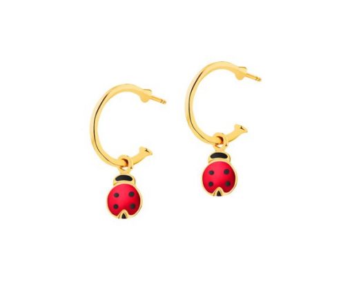 Złote kolczyki z emalią – biedronki